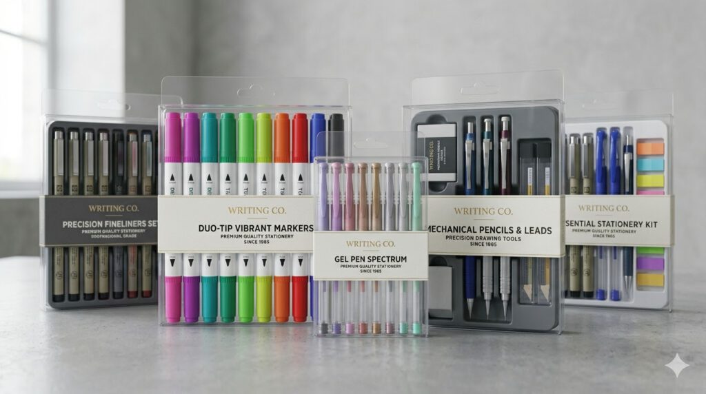 Wir kommen ursprünglich aus dem Bereich Schreibwarenverpackungen, sind heute aber vor allem durch unsere Materialkompetenz und unsere Bandbreite für viele weitere Branchen optimal aufgestellt: von Kosmetik über Elektronik & IT-Zubehör, Werkzeuge, Hobby, Spiel & Kreativ bis hin zu Werbemitteln.