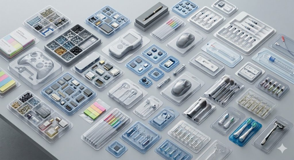 Ob als Etui, Blister, Schale, Klarsichtfaltschachtel, Tasche oder Folienverpackung: Unsere in Form, Funktion und Größe maßgeschneiderten Kunststoffverpackungen aus transparentem PP, PET und PVC werden individuell auf Ihr Produkt und Ihre Anforderungen abgestimmt. Mit modernen Fertigungsverfahren wie Thermoformen, präzisem Stanzen und verschiedenen Schweißtechniken entstehen passgenaue Lösungen für vielfältige Anwendungen.